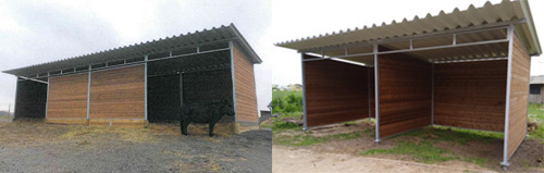 For at sikre, at dit læskur til heste passer perfekt til dine behov, tilbyder vi flere tilpasningsmuligheder. Som tilbehør kan du tilkøbe en frontvæg og/eller skillevæg: